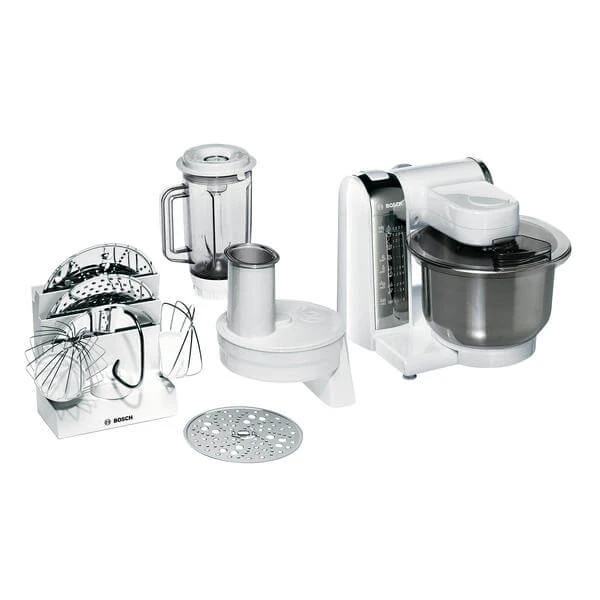 | Contenu de la livraison | DurchlaufschnitzlerZubehörträgerSchüsselSchlagbesenRührbesenKnethaken m. Teigabweiser3 Edelstahlscheiben1 l-Mixeraufsatz KunststoffInteraktive Rezept DVD |